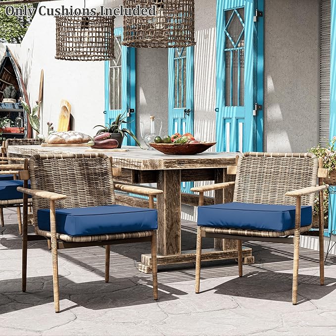 Patio Chair Cushions 24 X 24 X 5 Inch Waterproof Outdoor Seat Cushions for Patio Furniture, Outdoor Sofa Couch Pads with Ties & Handle, Set of 2, Blue