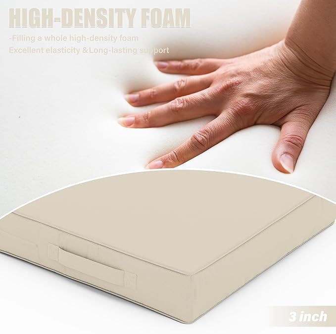 Patio Chair Cushions 17 X 16 X 3 Inch Waterproof Outdoor Seat Cushions for Patio Furniture, Outdoor Sofa Couch Pads with Ties & Handle, Set of 2, Cream