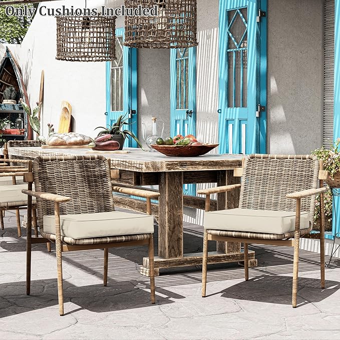 Patio Chair Cushions 22 X 22 X 4 Inch Waterproof Outdoor Seat Cushions for Patio Furniture, Outdoor Sofa Couch Pads with Ties & Handle, Set of 2, Cream