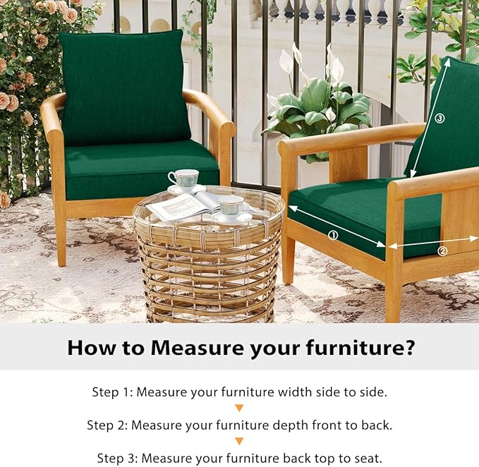 Sundale Outdoor Olefin Deep Seat Cushion, Patio Chair Cushion and Pillow, Water-Resistant Sectional Sofa Pad with Straps Dark Green, 23 x 26 x 4 Inches
