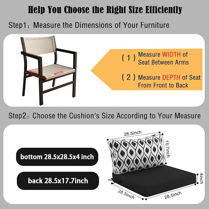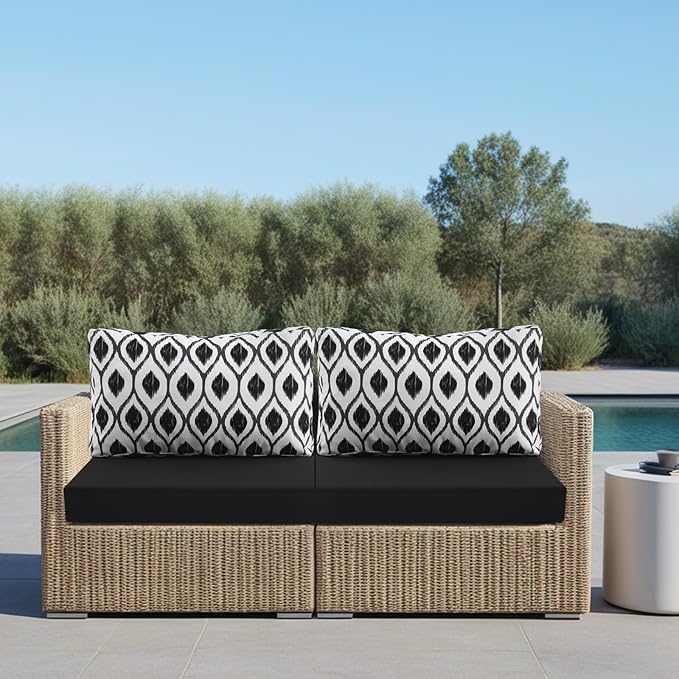idee-home Outdoor Cushions for Patio Furniture, Outdoor Seat Cushion, Waterproof Hampton Bay Deep Seat Replacement Couch Chair Cushions for Garden Lawn Backyard Deck, 28.5 x 28.5 Black Pattern
