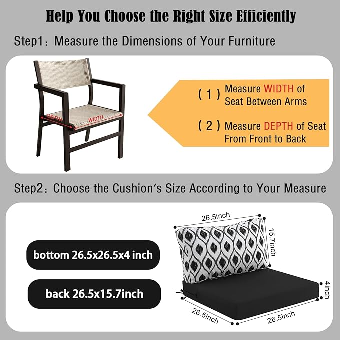 idee-home Outdoor Cushions for Patio Furniture, Outdoor Seat Cushion, Waterproof Hampton Bay Deep Seat Replacement Couch Chair Cushions for Garden Lawn Backyard Deck, 26.5 x 26.5 Black Pattern