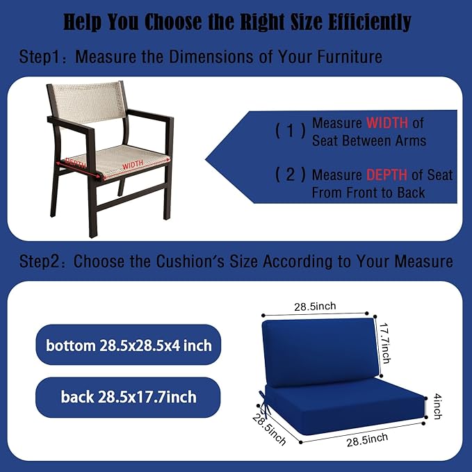idee-home Outdoor Cushions for Patio Furniture, Outdoor Seat Cushion, Waterproof Hampton Bay Deep Seat Replacement Couch Chair Cushions for Garden Lawn Backyard Deck, 28.5 x 28.5 Navy Bue