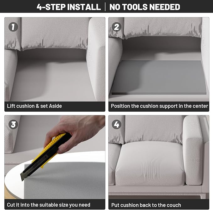 Couch Cushion Support for Sagging Seat - 20" x 20" High-Density Curved Foam Sofa Cushion Support Board, Couch Supporter for Under The Cushions, Grey Set of 2