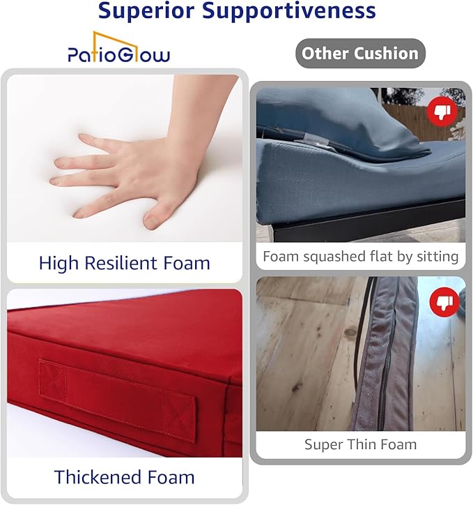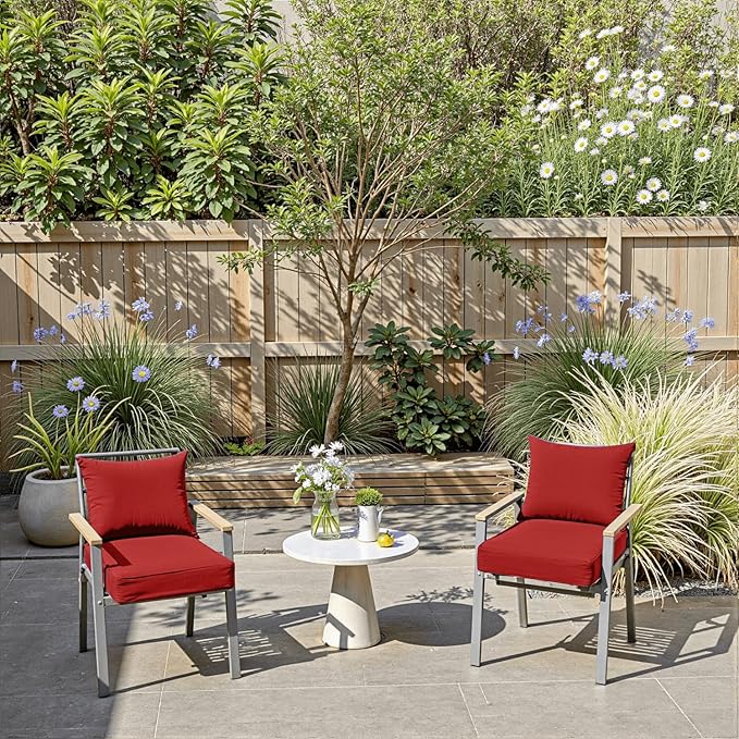 Outdoor Chair Cushions 17 x 16 x 2 Inch, Waterproof & Fade Resistant Patio Seat Cushion for Furniture with Handle and Ties, Thick Seating Pads for Outside Sofa Couch Set of 2, Red