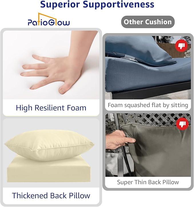 Outdoor Seat Cushion Set 22 x 24 x 4 Inch, Waterproof & Fade Resistant Patio Furniture Cushions with Removable Cover and Ties, Thick Deep Seating Pads for Outside Chair Sofa Couch, Yellow