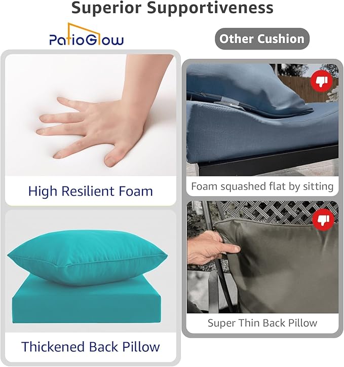 Outdoor Seat Cushion Set 24 x 24 x 4 Inch, Waterproof & Fade Resistant Patio Furniture Cushions with Removable Cover and Ties, Thick Deep Seating Pads for Outside Chair Sofa Couch, Teal