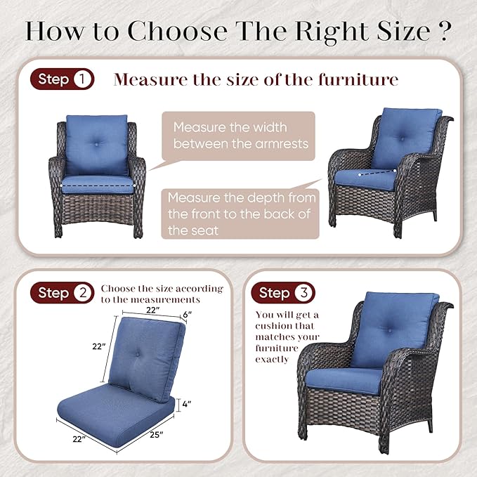 Outdoor Chair Cushions-Patio Chair Cushions Set of 2 with Removable Cover 22 X 25 Inch Outdoor Cushions for Patio Furniture Chair Sofa Couch-Blue