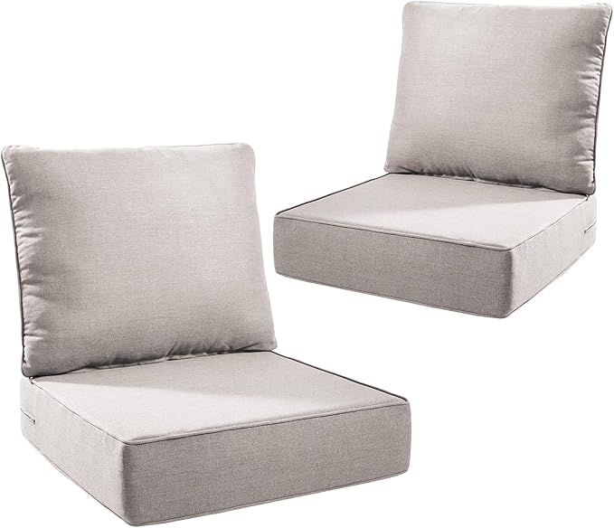 Outdoor Seat Cushion Set-24 x 24 x 6 Inch Outdoor Chair Cushions Set of 2 with Water Resistant & Removable Cover Outdoor Cushions for Patio Furniture Chair Sofa Couch-Beige