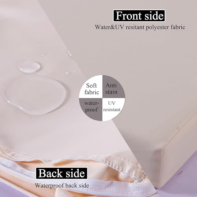 17 x 17 Inch Outdoor Seat Cushions for Patio Furniture with Non Slip and Ties Waterproof & UV Resistant Round Corner Outdoor Chair Cushions Replacement Set of 2, Beige