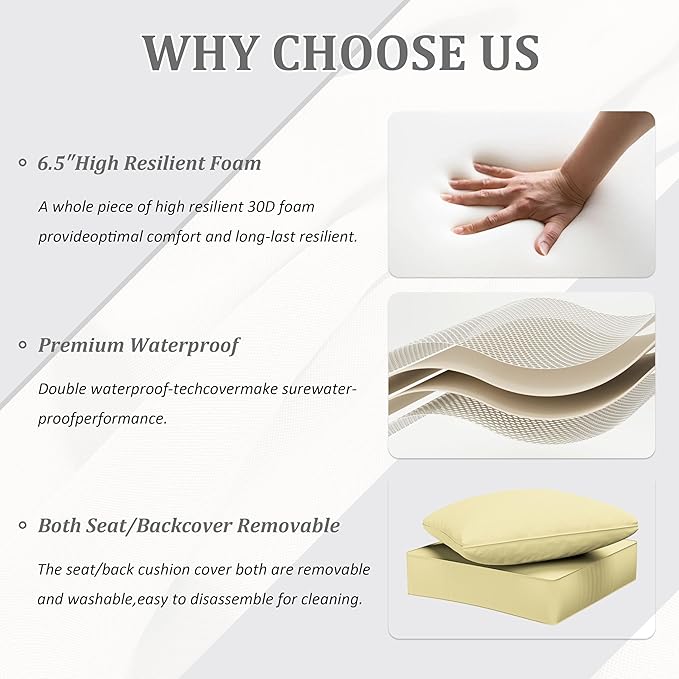 Outdoor Seat Cushion Set 24 x 24 x6.5 Inch Splash-Proof & Fade Resistant Patio Furniture Cushions with Removable Cover Deep Seat & Back Cushion with Straps for Chair Sofa Couch