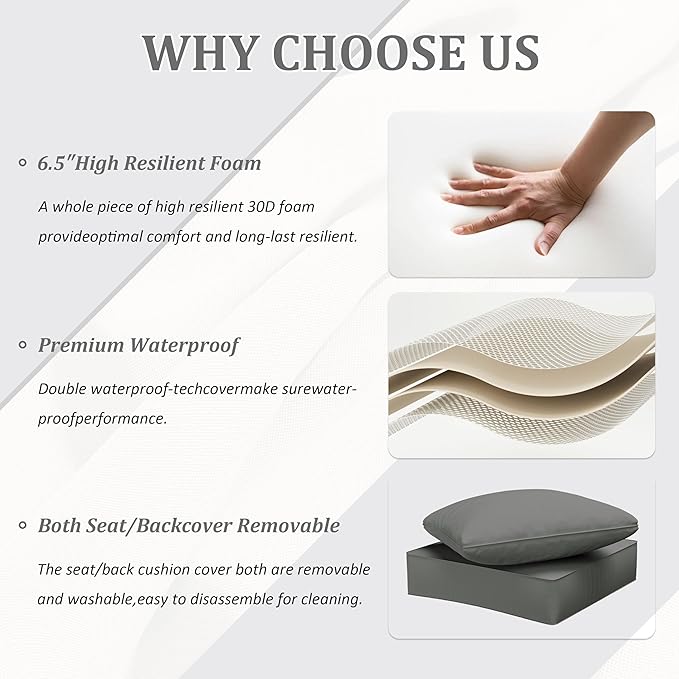 Outdoor Seat Cushion Set 24 x 24 x6.5 Inch Splash-Proof & Fade Resistant Patio Furniture Cushions with Removable Cover Deep Seat & Back Cushion with Straps for Chair Sofa Couch