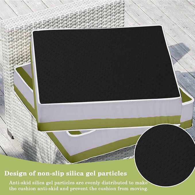 Outdoor Furniture Replacement Cushions, 14 Pcs Water-Resistant Replacement Sofa Cushion for Patio Garden Porch (Liner&Cover,Only Cushions No Sofa) (Grass Green and White Stripes)