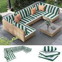 Outdoor Furniture Replacement Cushions, 14 Pcs Water-Resistant Replacement Sofa Cushion for Patio Garden Porch (Liner&Cover,Only Cushions No Sofa) (Green and White Stripes)