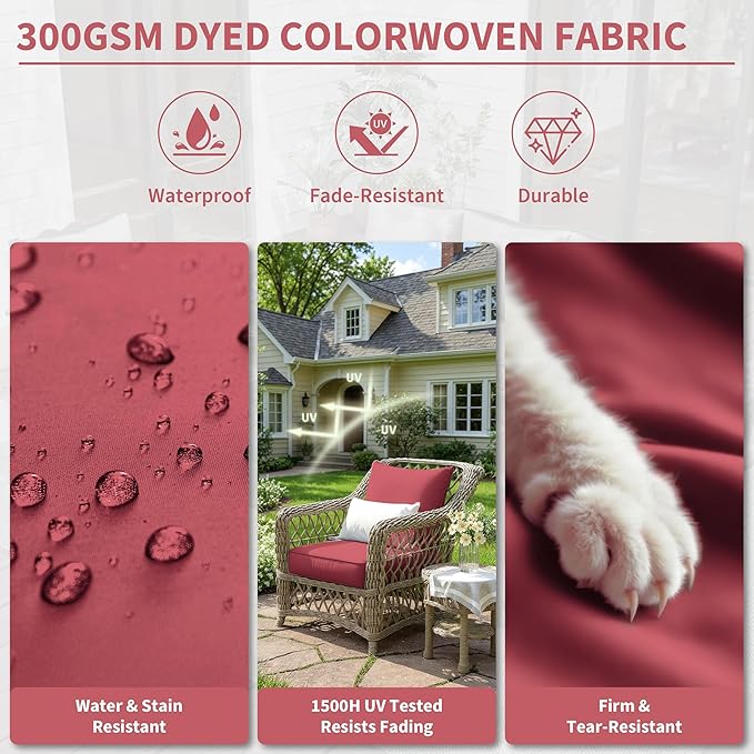 Premium Outdoor Seat Cushion Chair Cushions for Patio Furniture 22 L X 22 W X 4 H Waterproof & Fade Resistant Deep Seat and Backrest Cushion Set with Removable Covers for Chair, Sofa