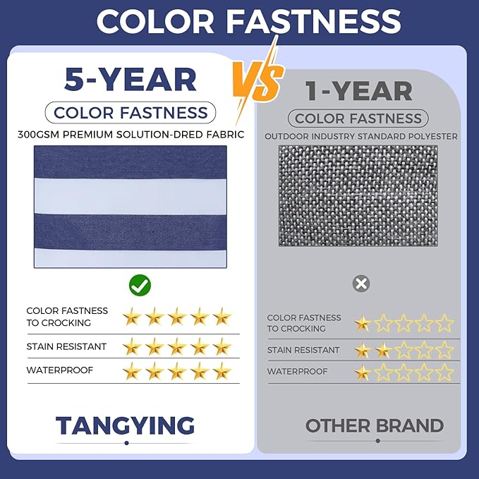 Outdoor Chair Cushion 18 x 18 x 3 Inch, Waterproof & 3-Year Fade Resistant Patio Furniture Cushions, Removable Cover and Adjustable Ties for Garden Sofa Couch (Sapphire Blue Cabana Stripe)