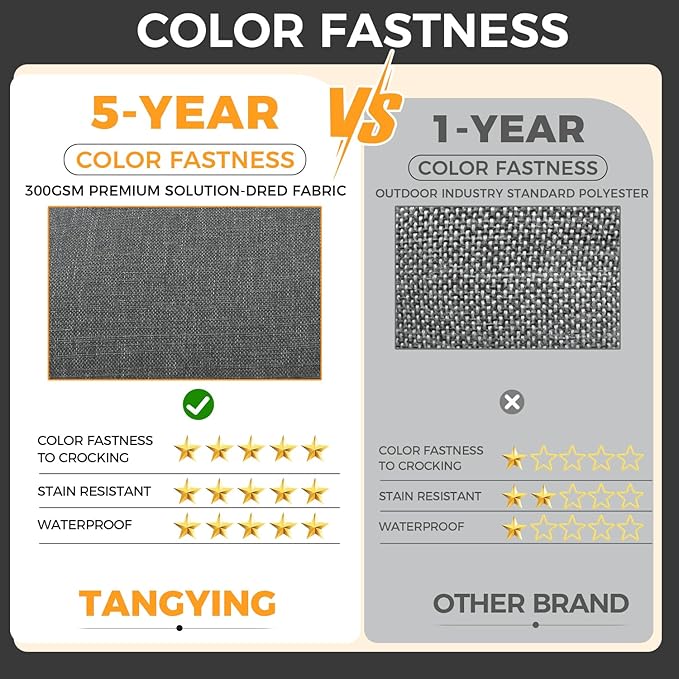 Outdoor Chair Cushion 18 x 18 x 3 Inch, Waterproof & 3-Year Fade Resistant Patio Furniture Cushions, Removable Cover and Adjustable Ties for Garden Sofa Couch (Dark Gray)