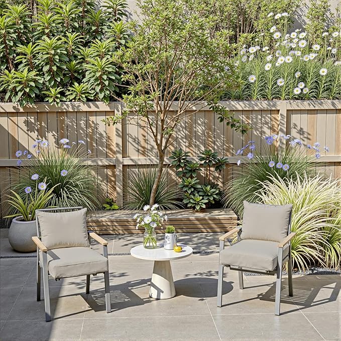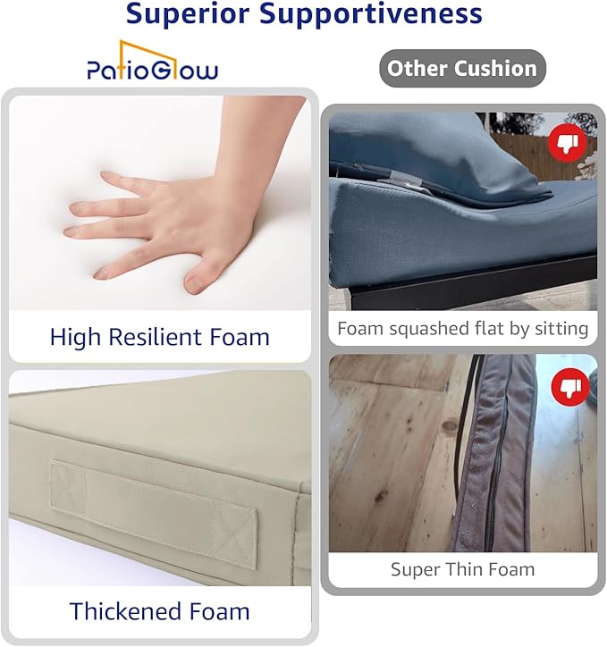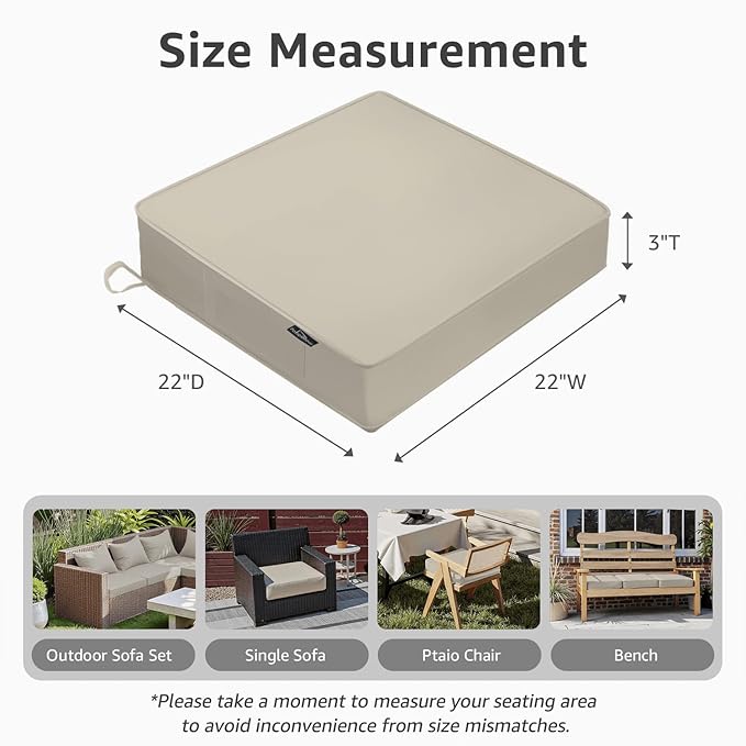 Outdoor Chair Cushions 22 x 22 x 3 Inch, Waterproof & Fade Resistant Patio Seat Cushion for Furniture with Handle and Ties, Thick Seating Pads for Outside Sofa Couch Set of 2, Cream