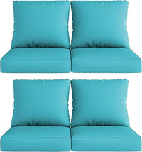 UIXE 24.5" Deep Seat Outdoor Cushion Set with Back Pillows, Patio Furniture Cushions, Sectional Sofa Bistro Chair Cushion - Teal Blue, Set of 4