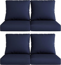 UIXE 24.5" Deep Seat Outdoor Cushion Set with Back Pillows, Patio Furniture Cushions, Sectional Sofa Bistro Chair Cushion - Navy, Set of 4