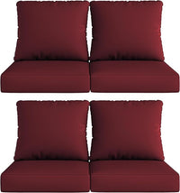 UIXE 24.5" Deep Seat Outdoor Cushion Set with Back Pillows, Patio Furniture Cushions, Sectional Sofa Bistro Chair Cushion - Red, Set of 4