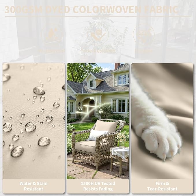 Premium Outdoor Seat Cushion Chair Cushions for Patio Furniture 22 L X 24 W X 4 H Waterproof & Fade Resistant Deep Seat and Backrest Cushion Set with Removable Covers for Chair, Sofa
