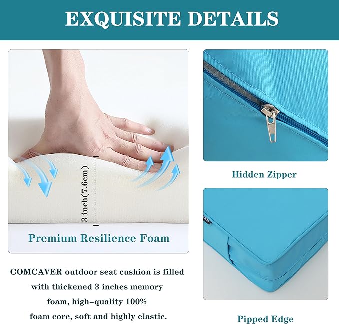 Patio Cushions for Outdoor Furniture, Fade and Weather Resistant Deep Seat and Backrest Cushion Set for Chair Sofa Couch Swing, 24x24 Inch, Teal, 1 Set