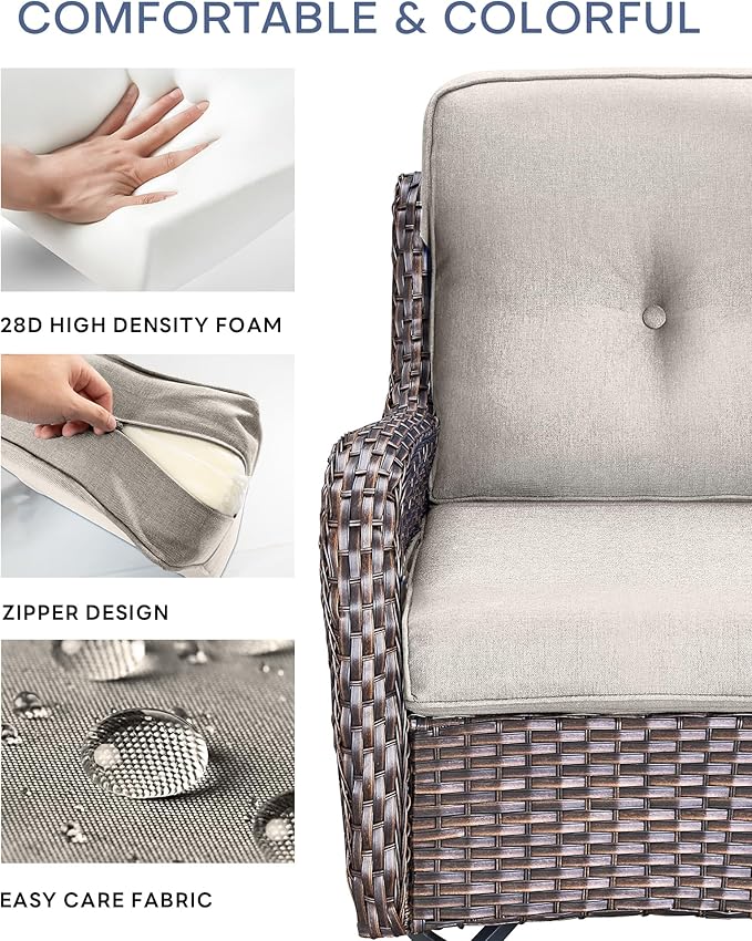 22x25/22x24 Outdoor Cushions for Patio 5 Piece Set - Set of 5 Water-Resistant Replacement Cushion for Wicker Rattan Dining Rocking Swivel Chairs Loveseat Couch Sectional Sofa - Beige/Button