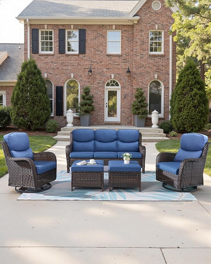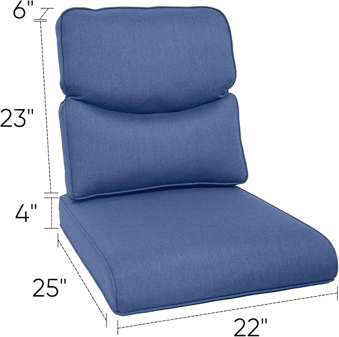 22x25/22x24 Outdoor Chair Cushions Set of 4 - Heavy Duty High Back Replacement Zippered Cushion for Patio Furniture Dining Gliding Rocking Chairs Loveseat L-Shape Sofa - Navy Blue/Smile