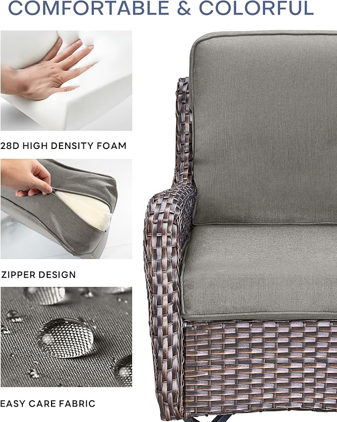 22x25/22x24 Outdoor Furniture Cushions Set of 6 - Comfortable Patio Chair Cushion for Rattan Wicker Dining Rocking Swivel Chairs Loveseat Couch L-Shape Sectional Sofa - Grey/Classic