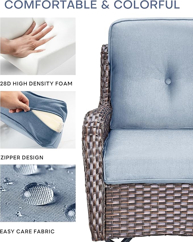 22x25/22x24 Outdoor Chair Cushions Set of 4 - Heavy Duty High Back Replacement Zippered Cushion for Patio Furniture Dining Gliding Rocking Chairs Loveseat L-Shape Sofa - Baby Blue/Button