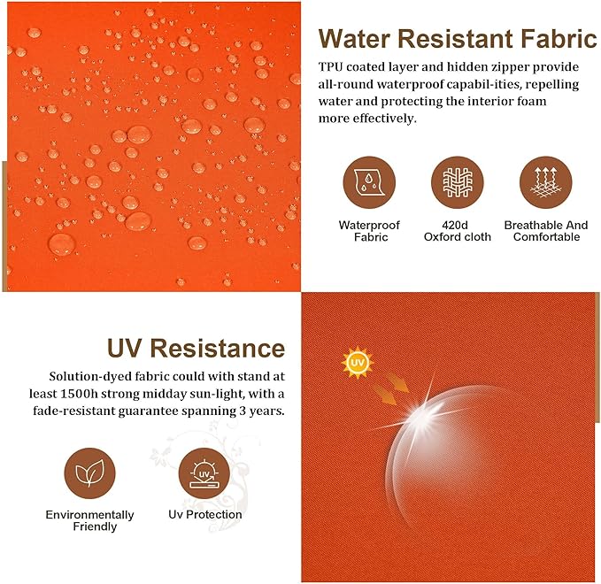 Outdoor Loveseat Cushion Set 46 x 26 Inch, Waterproof & Fade-Resistant Deep Seat Patio Cushions with Removable Cover, Ties & Hidden Zipper, Patio Love Seat Sofa Cushions for Sofa Bench Couch,Orange