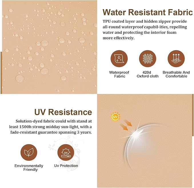 Outdoor Loveseat Cushion Set 46 x 26 Inch, Waterproof & Fade-Resistant Deep Seat Patio Cushions with Removable Cover, Ties & Hidden Zipper, Patio Love Seat Sofa Cushions for Sofa Bench Couch,Beige