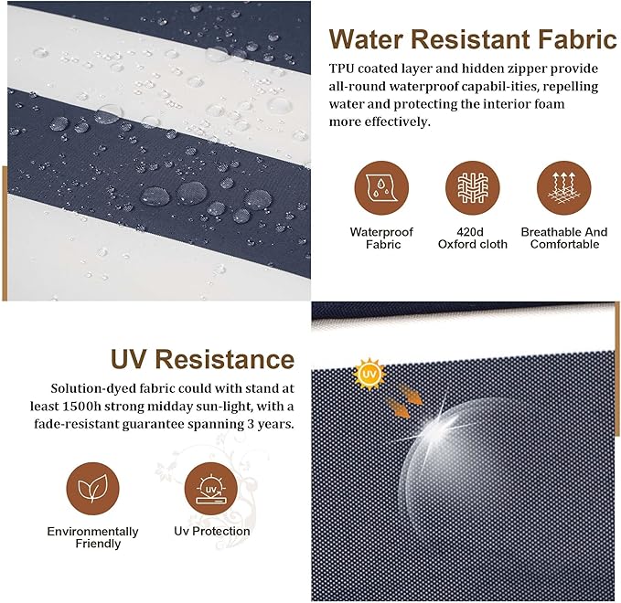 Outdoor Loveseat Cushion Set 46 x 26 Inch, Waterproof & Fade-Resistant Deep Seat Patio Cushions with Removable Cover, Ties & Hidden Zipper,Patio Love Seat Sofa Cushions for Sofa Bench Couch,BlueStripe