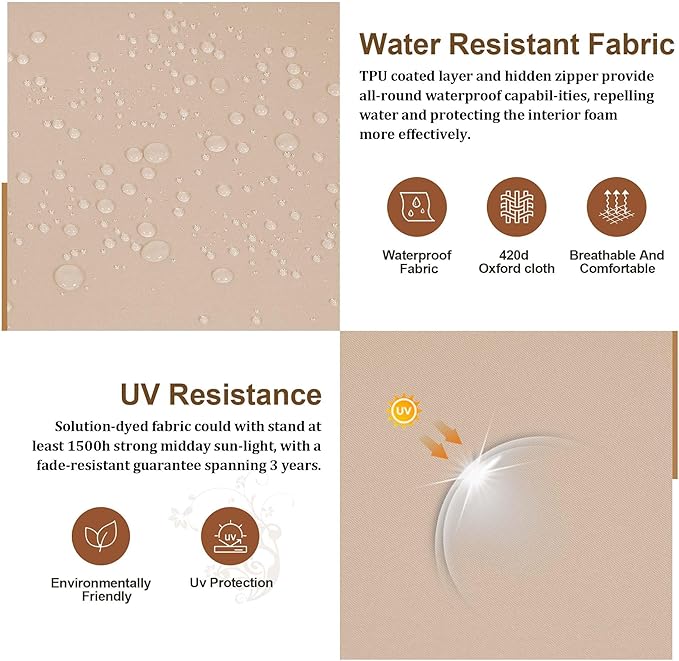 Outdoor Loveseat Cushion Set 46 x 26 Inch, Waterproof & Fade-Resistant Deep Seat Patio Cushions with Removable Cover, Ties & Hidden Zipper, Patio Love Seat Sofa Cushions for Sofa Bench Couch,Khaki