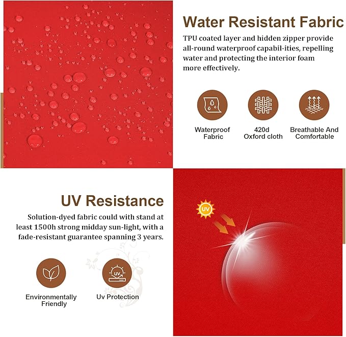 Outdoor Loveseat Cushion Set 46 x 26 Inch, Waterproof & Fade-Resistant Deep Seat Patio Cushions with Removable Cover, Ties & Hidden Zipper, Patio Love Seat Sofa Cushions for Sofa Bench Couch,Red