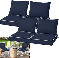 Waterproof Outdoor Chair Cushion Set of 4, 24x24x5 IN Deep Seat Patio Cushions with Fade Resistant Removable Cover,Outdoor Cushions for Patio Furniture with Ties&Handle for Chair Sofa Couch,Navy+Pipes
