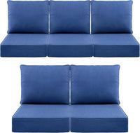 Luxury 6" Outdoor Cushions for Patio Furniture, 24x24x6 Thick Seat Cushion Set of 5, Fade Resistant Couch Chair Replacement Cushions High Density Deep Wicker Chair Cushion w/Removable Cover, Blue