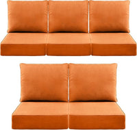 Luxury 6" Outdoor Cushions for Patio Furniture, 24x24x6 Thick Seat Cushion Set of 5, Fade Resistant Couch Chair Replacement Cushions High Density Deep Wicker Chair Cushion w/Removable Cover, Orange