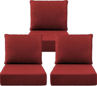 Luxury 6" Outdoor Cushions for Patio Furniture, 24x24x6 Thick Seat Cushion Set of 3, Fade Resistant Couch Chair Replacement Cushions High Density Deep Wicker Chair Cushion w/Removable Cover, Red