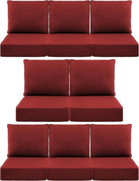 Luxury 6" Outdoor Cushions for Patio Furniture, 24x24x6 Thick Seat Cushion Set of 8, Fade Resistant Couch Chair Replacement Cushions High Density Deep Wicker Chair Cushion w/Removable Cover, Red