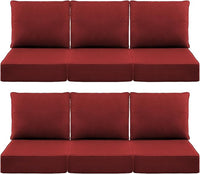 Luxury 6" Outdoor Cushions for Patio Furniture, 24x24x6 Thick Seat Cushion Set of 6, Fade Resistant Couch Chair Replacement Cushions High Density Deep Wicker Chair Cushion w/Removable Cover, Red