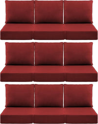 Luxury 6" Outdoor Cushions for Patio Furniture, 24x24x6 Thick Seat Cushion Set of 9, Fade Resistant Couch Chair Replacement Cushions High Density Deep Wicker Chair Cushion w/Removable Cover, Red
