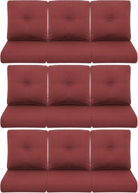 9-Piece Outdoor Patio Cushion Set - Fade & Water Resistant with Removable Olefin Cover, 22x24x4 Inch Memory Foam Cushions for Wicker Sectional Sofa – Red/Buckle