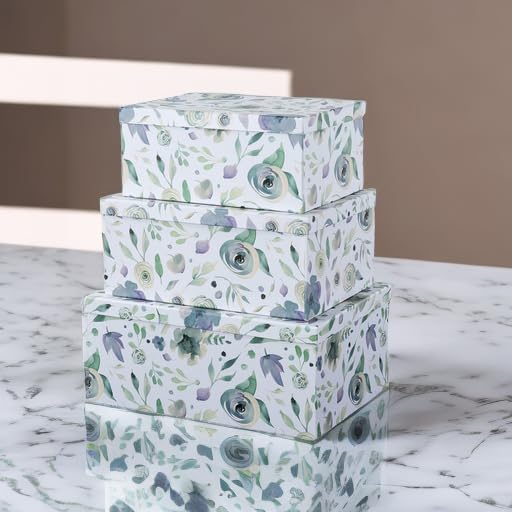 Soul & Lane Decorative Cardboard Storage Boxes with Lids for Home Decor and Organizing, Set of 3 Large Keepsake Boxes for Memories & Gifts, Nesting Floral Photo Storage Containers, Handpicked Bouquet
