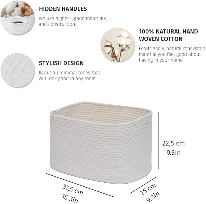OrganiHaus Set of 3 White Woven Baskets for Organizing | Cotton Rope Basket for Decor | Shoe Basket Organizers & Storage | Decorative Storage Baskets & Bins | Cute Storage Basket for Toys & Cloths