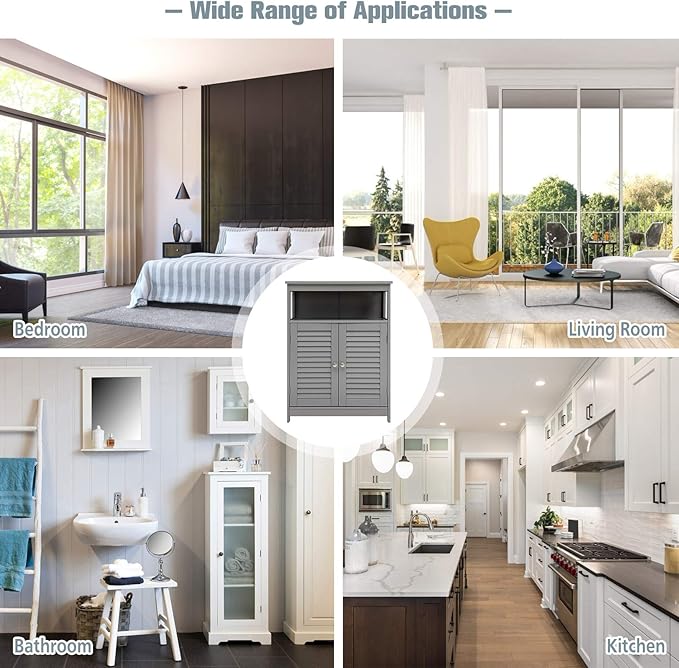 Tangkula Bathroom Floor Cabinet, Wooden Freestanding Storage Cabinet with Double Shutter Door & Adjustable Shelf, Storage Cabinet for Bathroom Living Room (Grey) Sale