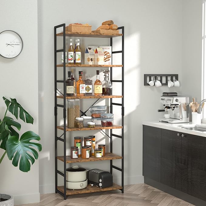 NUMENN 6 Tier Bookshelf, Tall Bookcase Shelf Storage Organizer, Modern Book Shelf for Bedroom, Living Room and Home Office, Vintage