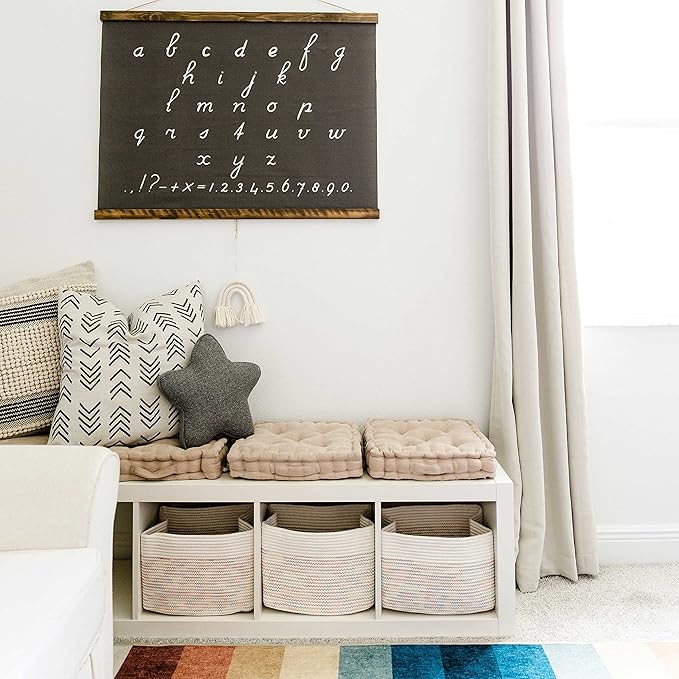 OrganiHaus Woven Storage Basket, Nursery Storage Basket, Towel Basket for Bathroom, Cotton Rope Basket for Storage, Decorative Storage Baskets, Woven Baskets for Storage, Rainbow Book Basket