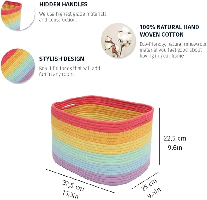 OrganiHaus Rope Rainbow Storage Baskets for Shelves, Rainbow Baskets for Classroom, Baby Basket for Nursery Storage, Rainbow Storage Bins & Toy Organizer, Colorful Baskets for Baby Room